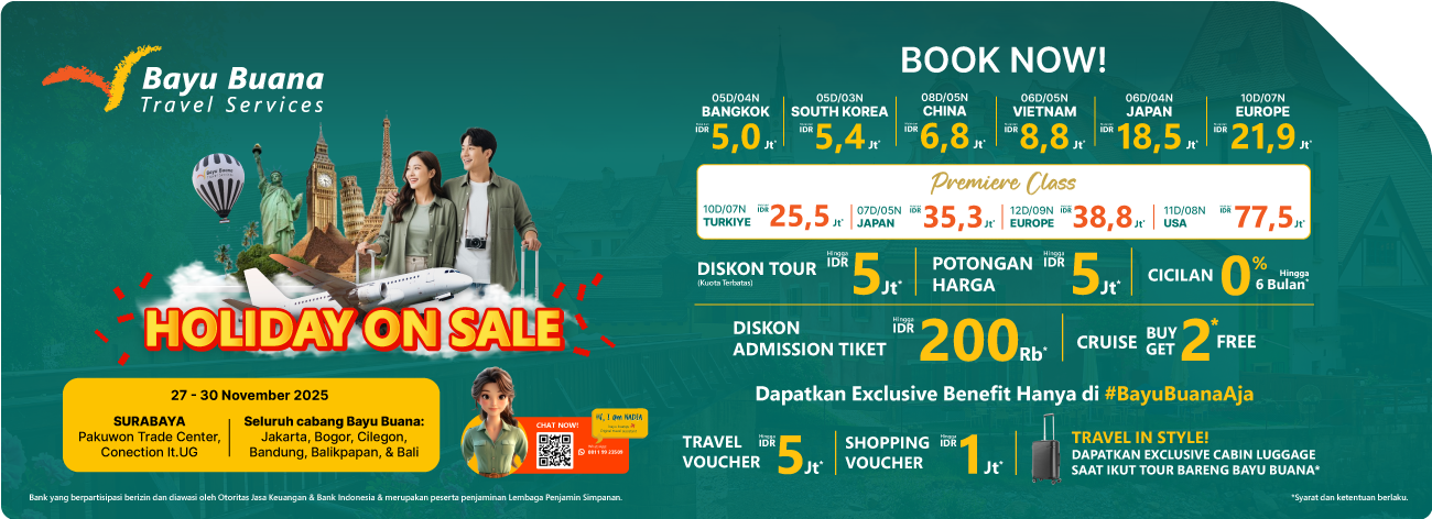Kamu juga bisa kunjungi cabang Bayu Buana terdekat atau chat NADIA sebelum liburan impianmu diambil orang lain🤩