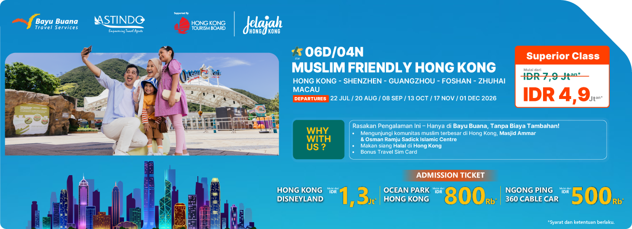 Liburan ke Hong Kong kini bebas khawatir, lancar, dan penuh makna dengan pengalaman ramah Muslim yang dikurasi secara khusus oleh Bayu Buana Travel Services.