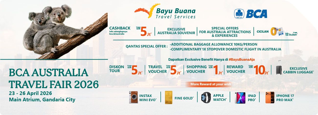 Ini saatnya wujudkan liburan impianmu ke Australia bareng #BayuBuanaTravelServices dengan promo spesial & exclusive benefit yang sayang banget untuk dilewatkan βοΈ