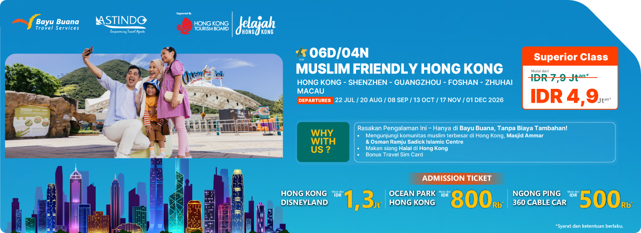 Liburan ke Hong Kong kini bebas khawatir, lancar, dan penuh makna dengan pengalaman ramah Muslim yang dikurasi secara khusus oleh Bayu Buana Travel Services.